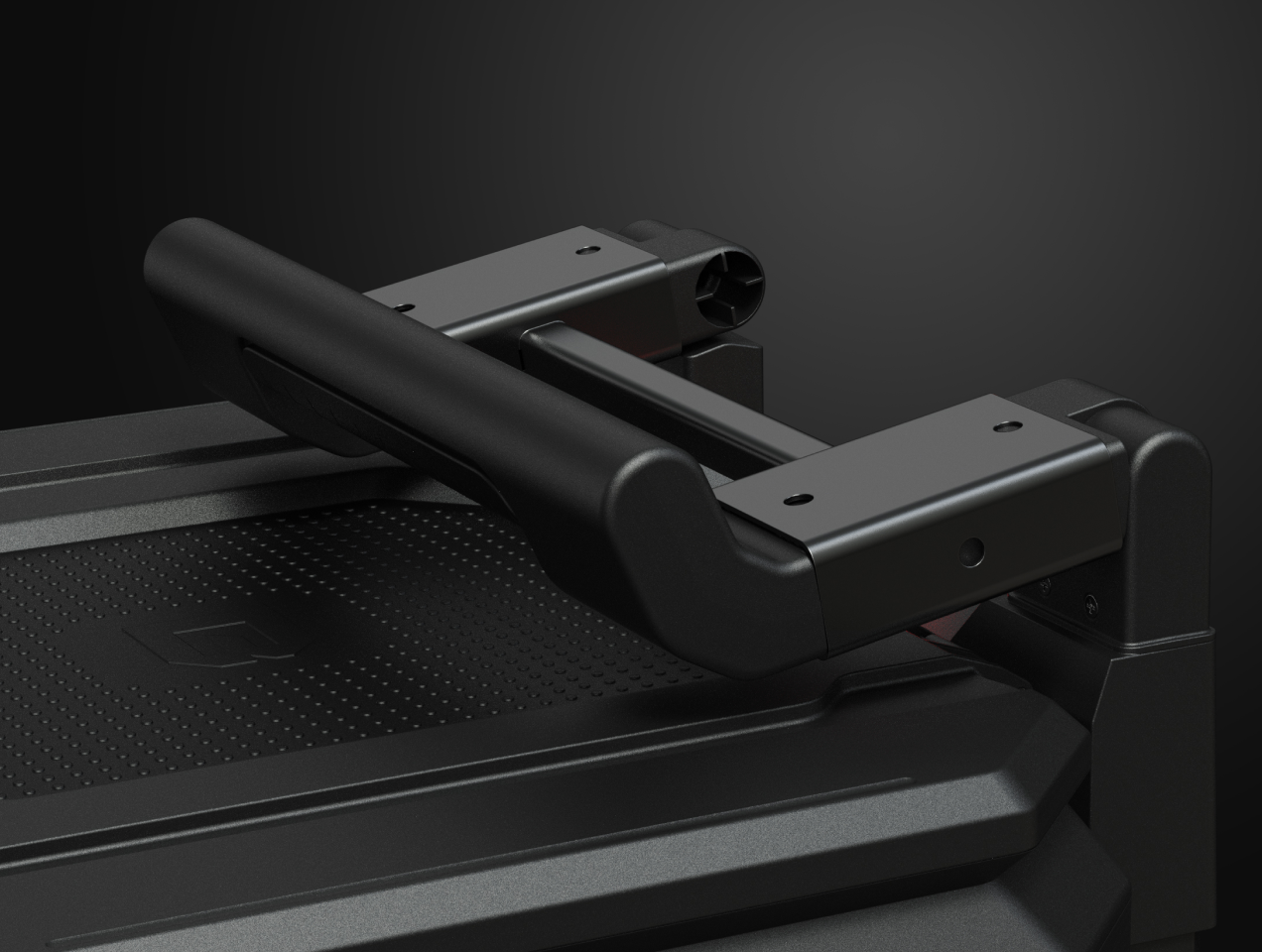 Designed for maximum portability and convenience. Engineered to effortlessly extend for easy maneuverability and retract for compact storage, this handle allows the toolbox to fit seamlessly into any full-size truck bed, even with the cover down.