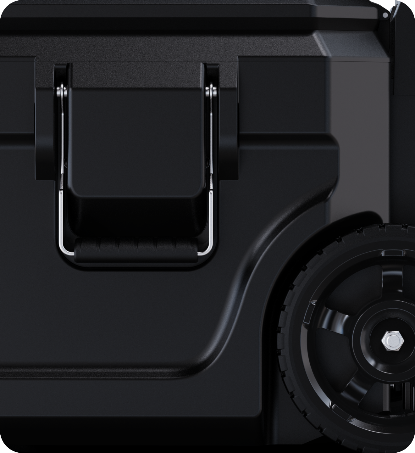 Durable 9-inch all-terrain wheels, the Battalion Smart Toolbox is built to effortlessly navigate across any job site with smooth mobility over rough or wet surfaces, gravel, or stairs. The design focuses on stability and ease of movement, making it simple to take your toolbox wherever you need to go, regardless of the terrain.